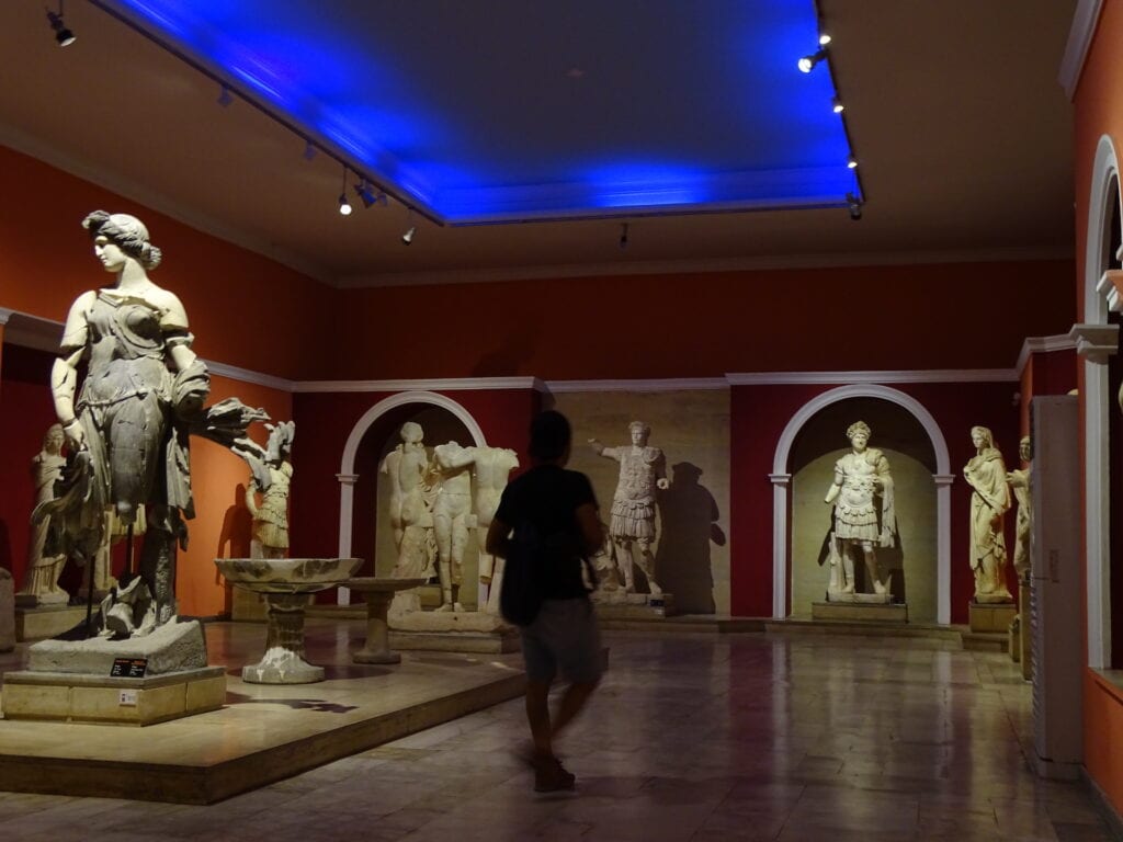 Antalya Museum, også kaldet Antalya Arkeologi Museum, er et af Tyrkiets største og vigtigste museer. Med sine 7.000 m2, 14 udstillingssale og hele 30.000 genstande, er det sikkert at sige, at det er kæmpestort og meget imponerende. Man kan uden tvivl godt regne med at bruge 3-4 timer i museet uden at det virker langtrukket eller ensformet, for der er bare virkelig meget at se, og sågar ting fra mange forskellige perioder. Men hvad jeg synes er mest imponerende ved museet, er helt klart de mange romerske statuer af både mytologiske figurer og vigtige romerske personer, som også kan ses på billedet ovenfor. Selv hvis man ikke er til museer, så tror jeg stadig, at man vil finde dette museum interessant, for der er virkelig så mange imponerende og forbløffende værker.