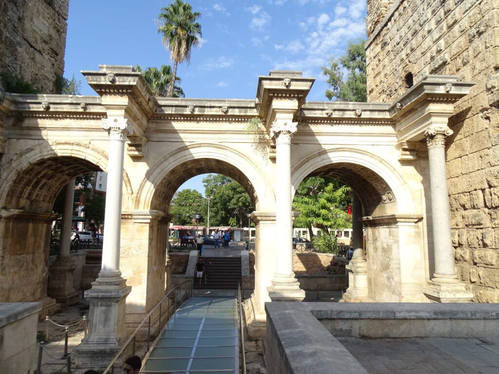 Hadrians Gate eller Üc Kapilar, som den hedder på tyrkisk, er en triumfbue, som er indgangen til Kaleici. Den er fra år 130 og blev bygget under den romerske kejser Hadrians navn. Triumfbuen består af tre buer og tre kolonner. Som det også ses på billedet ovenfor, så er den utrolig smuk og står stadig flot og velbevaret efter så mange år. Det er virkelig et pragteksempel på byens meget gamle historie og bør i den grad ikke misses. Når du endelig er færdig med at tage de obligatoriske billeder og selfies foran buen, så gå gerne nærmere imod værket og læg gerne mærke til de fantastiske og yderst detaljerede udskæringer, både ovenpå og under buerne (se billedet nedenfor). Jeg ved ikke om det bare er mig der nørder over det, men når jeg kigger på udskæringerne, bliver jeg dybt imponeret og forbløffet, og jeg tænker over hvordan i alverden de har lavet det og hvor svært det egentlig må have været.