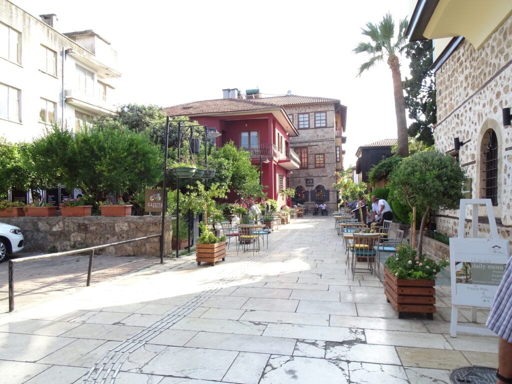 Kaleici, også kaldet Old Town, er den ældre del af Antalya og er bare super charmerende. Der er flotte og farverige huse helt tilbage fra Osmannerriget, hyggelige smalle gader, cafeer og en havudsigt der siger spar to. Du kan desuden finde en masse små butikker der sælger alt muligt turistrelateret. Vil man gerne bo i dette område, er der også massere af muligheder. Du kan fx bo på et af de mange hyggelige boutique hoteller, der tidligere har været gamle osmanniske huse. Slutteligt vil jeg komme med en lille reminder – selvom det umiddelbart ikke skulle se sådan ud, så kan der faktisk komme taxaer og andre biler farende rundt om hjørnet i Kaleici. Hvordan de kan komme igennem større mængder af mennesker og MEGET smalle gader er mig en gåde…Så en god ide er lige at kigge sig over skulderen en gang imellem.