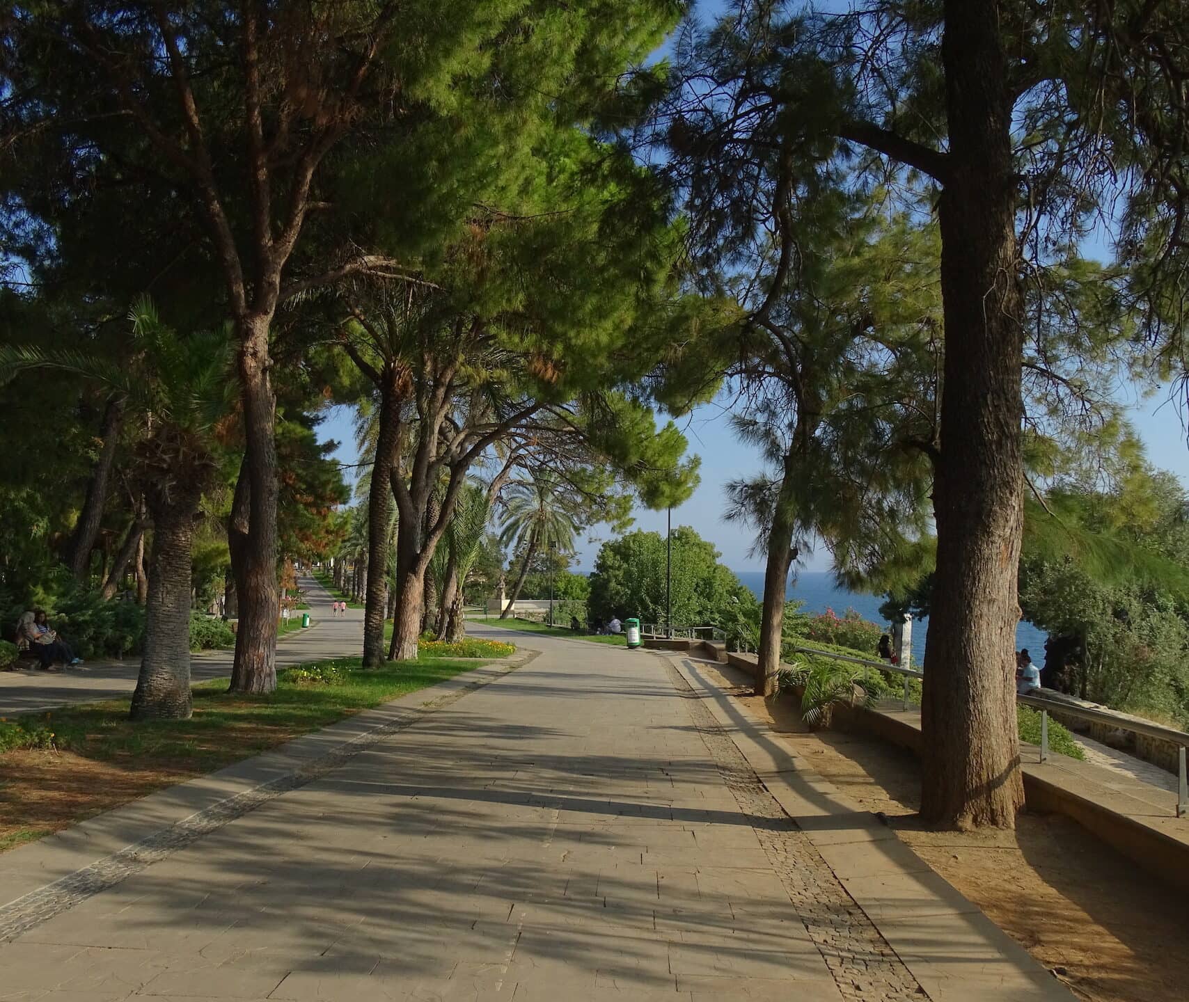 Karaalioglu Parken er igen et meget fredfyldt sted med masser af træer, der giver tiltrængt skygge for den stegende sol, samt en park, hvor man kan gå lange ture og hygge, mens man nyder den fremragende udsigt af middelhavet. Parken befinder sig midt i den gamle bydel, imellem Kaleici og havnen, så skal man alligevel ned til havnen, synes jeg bestemt at parken er et besøg værd. Foruden at være et hyggeligt og frodigt spot, så er det muligvis også et af de steder, hvor du kan få den bedste udsigt over byen. Man kan nemlig se en del af byen langs kysten med sine flotte klipper og det er virkelig et smukt syn. Om aftenen får parken et helt nyt liv og der strømmer en masse mennesker ind, som går hyggelige aftenture, spiser god mad eller tager til et af de meget populære “te-haver/huse”, som er i området.