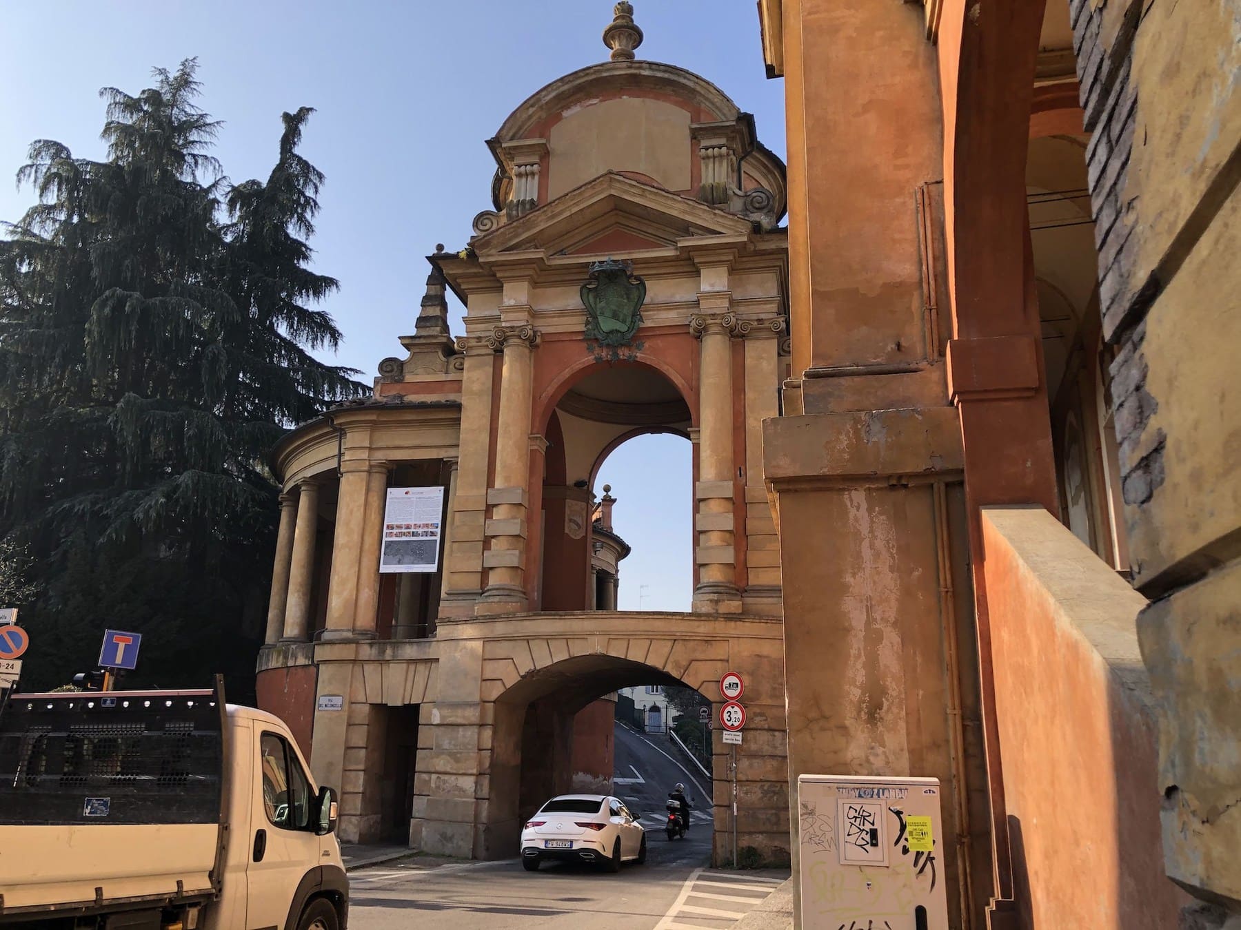 Men fra Porta Saragozza, kommer der noget helt særligt, nemlig Portico di San Luca, der er verdens længste søjlegang med sine næsten 4 kilometer længde, der strækker sig fra ovenstående til San Luca kirken. Det er da ret fedt! Så fire kilometer – okay det lyder da fint, tænker du nok, men husk også på, at det er bogstaveligt talt op af bakke, med både fladt underlag, men selvfølgelig også trapper. Så det er bestemt ikke en nem tur, tværtimod – det var nok en af de mest udfordrende ture, rent fysisk (sammen med Due Torri trapperne, selvfølgelig!). På turen derop var der ret mange, der motionerede og brugte turen som en del af deres cardio træning – det er ret voldsomt, må man sige. Jeg må indrømme, at turen virkelig var lang, og den føltes nærmest uendelig, for hver gang du når til enden af trapperne eller et stykke af gangen, så kommer der bare mere. Så jeg må understrege, det er bestemt ikke nemt. På vejen derop skal du huske at kigge ud en gang i mellem, for du kan både se Bolognas fodboldstadion og en fremragende udsigt af de smukke bakker.