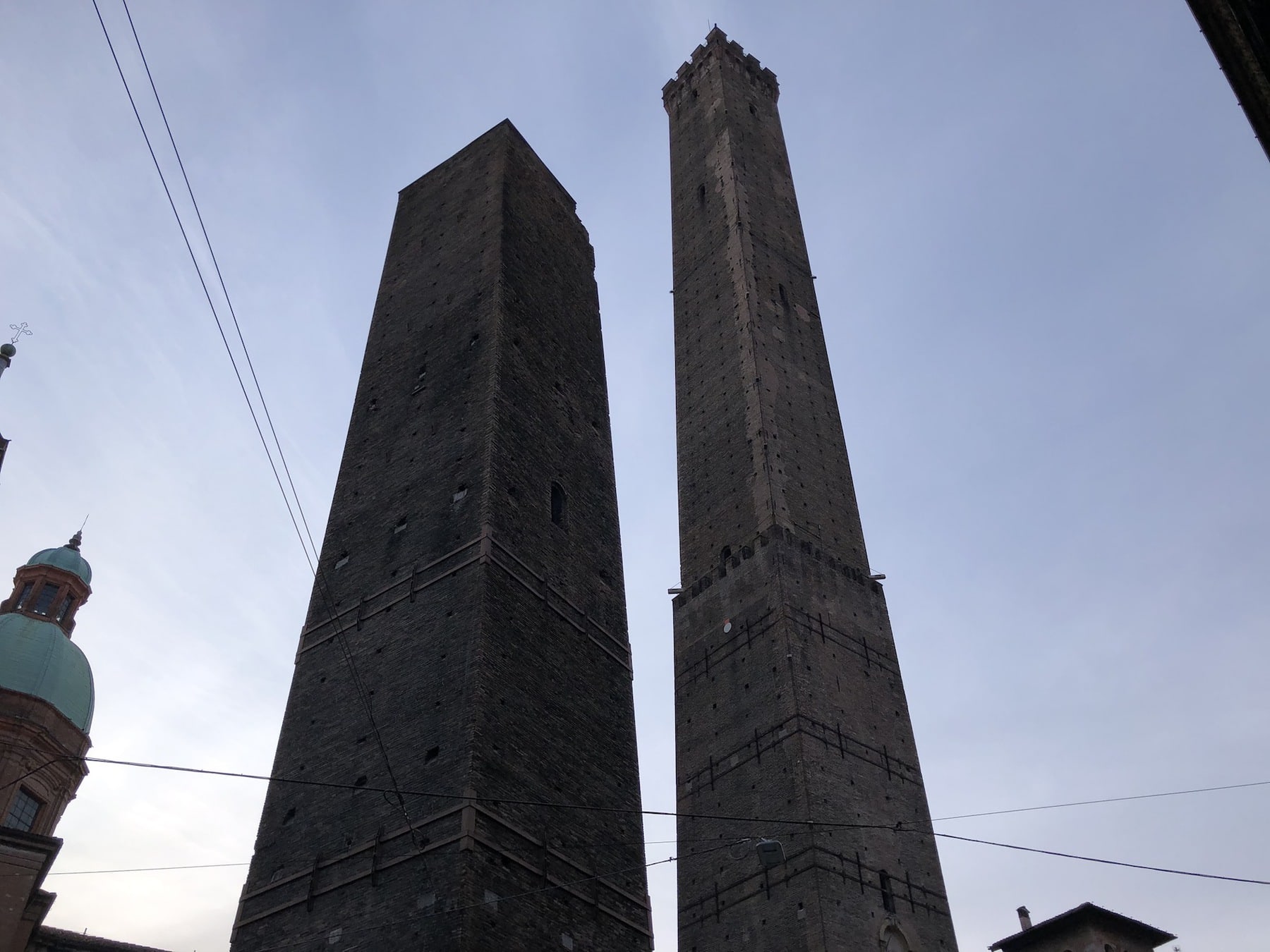 Le Due Torri eller de to tårne, er også to af de mest velkendte symboler for byen. Tårnene ligger også i centrum, så hvis du nogensinde bliver væk i Bologna, så bare følg tårnene 🙂 De blev bygget i ca. 1119 og er henholdsvis 48 m og 97,2 m høje. Det højeste hedder Asinelli, mens det laveste hedder Garisenda – navnene er familienavnene på dem, der byggede tårnene. Dengang forholdte det sig faktisk således, at familierne i Bologna konkurrerede med hinanden om, hvem der kan bygge det højeste tårn. Formålet var selvfølgelig at vise, hvem der var mest magtfuld. Der var helt op til 180 tårne i byen i middelalderen, men nu er der dog kun 24 stående tilbage. Måske fremgår det ikke helt i billedet, men en anden sjov detalje ved tårnene er, at de begge er skæve og svajer derfor ret meget – så meget, at det tydeligt kan ses. Så det er ikke kun Pisa, der har et skævt tårn 😉 Man kan komme op i et af tårnene, hvilket er det højeste, nemlig Asinelli tårnet. Der er desværre ikke nogen elevator, så du skal op af hele 498 trappetrin, for at komme op til toppen. Trappetrinene er lavet af træ og har et gældender hele vejen, som man kan støtte sig op af. Der er steder, hvor trappen går i stejle cirkler og andre steder, hvor den er nærmest som en stige. Jeg vil i den grad ikke underdrive vejen derop – det er MEGET svært og kræver en stor indsats at komme derop, uden tvivl. Så hvis du er lidt ældre, ikke er så godt gående eller bare ikke orker turen, så vil jeg kraftigt anbefale, IKKE at gøre det. Men hvis du er modig og tager udfordringen op, så bliver du i den grad belønnet med en suveræn udsigt. Du får en 360 graders udsigt over hele den historiske by med de flotte røde tage. Men det er især smukke bakker i baggrunden, der virkelig hæver udsigten til et helt andet niveau, for mit vedkommende. En fantastisk oplevelse, intet mindre. Det koster 5 euro at komme derop. Du kan købe billetterne enten online eller ved Bologna Welcome bureauet på Piazza Maggiore – man kan ikke købe dem ved tårnet.