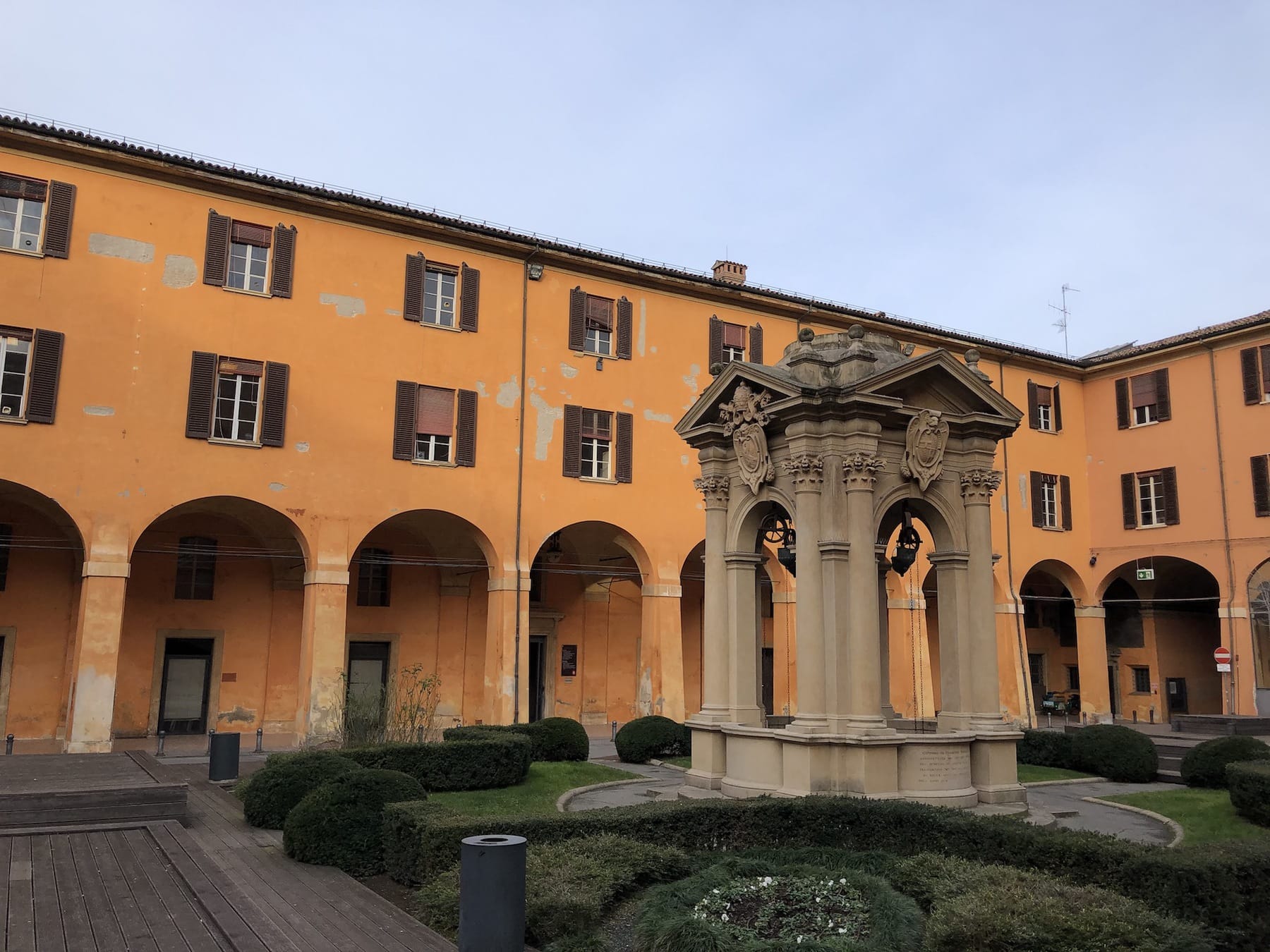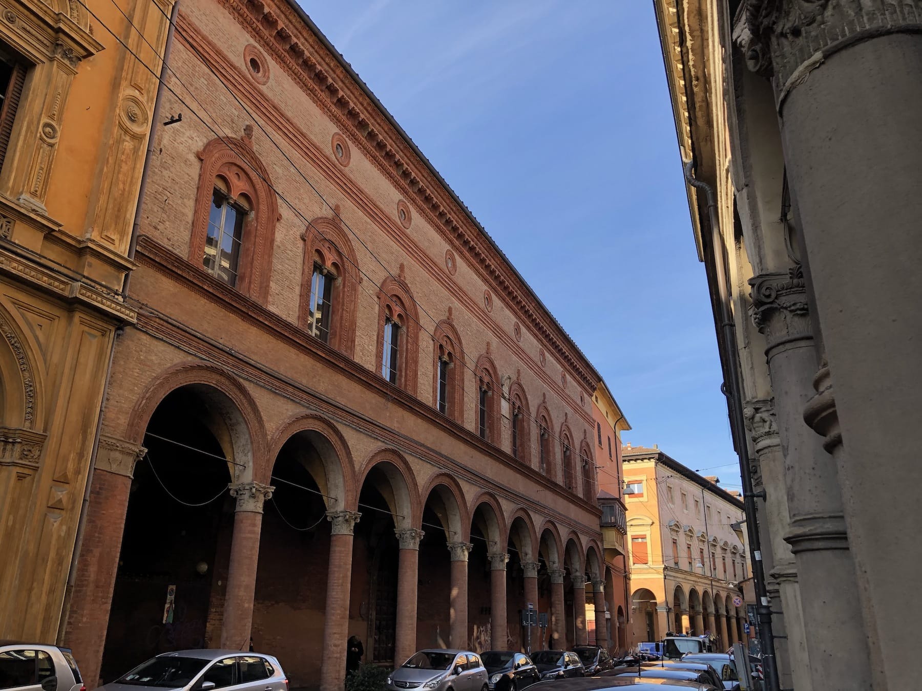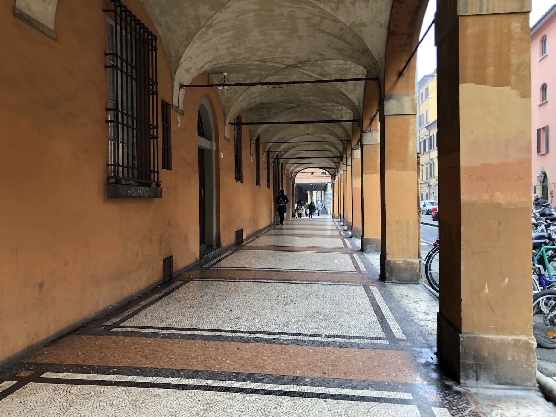 Jeg har skrevet om det ret ofte, men det, der virkelig gør mig blød i knæene ved de her historiske byer, er den smukke arkitektur, de smalle gader, historiske og farverige bygninger og bare det her med at udforske og blive væk i byen – bare vandre igennem gaderne uden noget egentligt formål udover at beundre arkitekturen og ikke mindst, forestille sig alt den historie, som de her gader emmer af og alle de historiske personer, der har gået der – og alt det, har Bologna i overflod. Som jeg også nævnte tidligere, så har Bologna Europas andet største historiske center, og det er en drøm, for en som mig, der virkelig elsker historie og gamle, historiske bygninger. Hvor end du går hen, så er der altid steder, der har flotte farverige bygninger eller historiske bygninger med smukke detaljer. Og det er ikke kun de smalle gader, der er flotte – Bologna har også mange pladser, som har flotte statuer, farverige bygninger og en masse historie, fx Piazza Aldrovandi (se billede forneden), Piazza Santo Stefano og pladsen ved Due Torri. Så jeg vil helt klart anbefale jer, prøv at tage lidt tid fra at jagte den ene seværdighed efter den anden, og gå i stedet ud og udforsk byen lidt – vandr rundt mellem gaderne, lig mærke til detaljerne, læs nogle af skiltene der er på visse signifikante bygninger osv. Grunden til at jeg synes det er så vigtigt er, at du får muligheden for at fokusere på dine omgivelser og værdsætte enhver detalje, samt potentielt falde over nogle lidt skjulte, spændende bygninger, steder osv., som du måske ellers ikke havde gjort. En anden ting jeg vil nævne mht. Bolognas gader er alle de flotte søjlegange. Det er noget, som byen er kendt for og som både ser flot ud, men i høj grad også er praktisk, fx ved regn eller varmt vejr. Der er faktisk hele 38 km af søjlegange i det historiske centrum, så du er nærmest konstant dækket til, når du går rundt i byen.