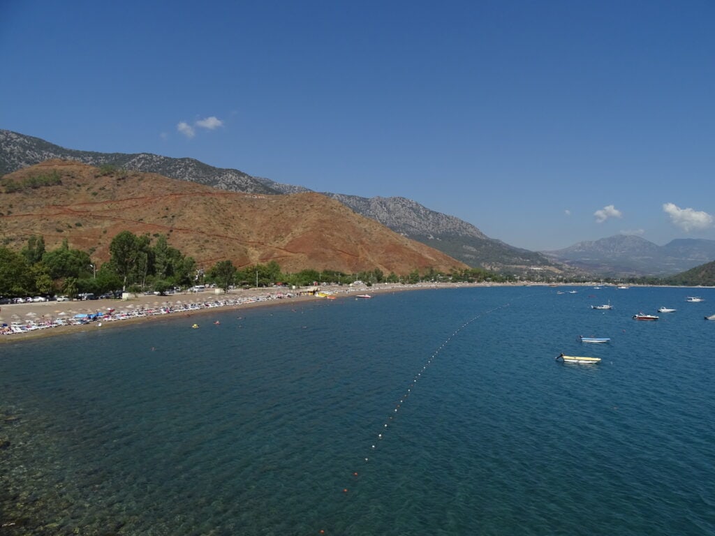 Adrasan er syd for Antalya by og ligger 1 time og 21 min fra byen. Adrasan er en landsby i Kumluca distriktet og er ikke ligefrem det største sted i verden, men er utrolig smuk, charmerende og bare så hyggelig! Det er virkelig det ultimative sted for dem, der bare ønsker at slappe af og tage tingene i et lavere tempo på deres rejser. Men vigtigst af alt, så har denne lille landsby noget af det smukkeste natur i landet, som jeg har set. Du har de dramatiske og episke bjerge, frodige skovområder og en super lækker og blød sandstrand – og går/kører du op på en af bjergene, kan du få en helt fantastisk udsigt som billederne foroven! Og bare fordi det er en landsby, er det ikke ensbetydende med, at der ikke er taget højde for turisme, tværtimod – kystdelen af landsbyen er nærmest dedikeret til turisme, med små, hyggelige butikhoteller, pensionater, lejligheder osv. Derudover er der også godt med restauranter og caféer, så mad er bestemt heller ikke et problem – her finder du små bikse, der sælger fast food, fiskerestauranter, caféer og lokale restauranter, der specialiserer sig i det tyrkiske middelhavskøkken, med forskellige mezze, salater og kolde olivenolieretter. Ved sådan nogle steder her, er det selvfølgelig lidt begrænset hvad man kan lave. Men der er selvfølgelig nogle ting man kan lave – faktisk ret spændende ting – Adrasan er kendt for at have et meget klart vand, så der er fx gode muligheder for at dykke her. Man kan også få en bådtur omkring området. Men måske mest populært af dem alle er, at Adrasan ligger langs med den verdenskendte vandrerute, “Den lyriske vej (Lycian Way)”, som strækker sig over 500 km og går langs middelhavskysten fra Fethiye til Konyaalti. Navnet stammer fra Lyrikerne, der er en gammel civilisation, som boede i dette område. Derfor kan du langs ruten opleve virkelig mange antikke byer, der er på UNESCOS verdensarvliste, og selvfølgelig smuk natur og landskaber. Adrasan er stadig relativt ukendt, især blandt udenlandske turister, så du ser ikke mange turister, dog er tallet stigende. Jeg ved godt, at jeg har kategoriseret Adrasan som en dagsdestination, men jeg ville ønske, at jeg havde tilbragt nogle dage her, i stedet for nogle timer, for der er utrolig dejligt! Jeg skal helt sikkert tilbage igen!