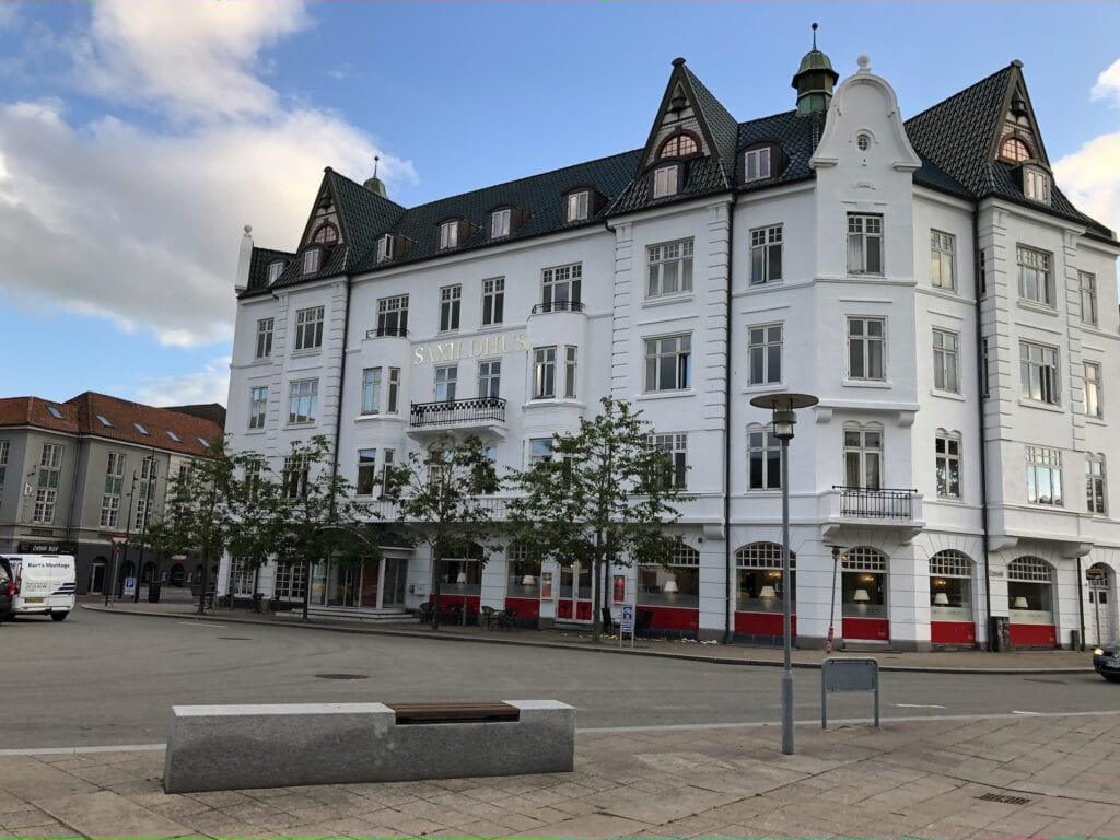 Et af de største grunde til at jeg valgte lige netop Kolding på min rute, var på grund af de billige og gode overnatningsmuligheder. Da jeg tjekkede overnatningssteder ud i sommers, var Ribe (destinationen før Kolding) rimelig dyr og mulighederne var få og ikke specielt imødekommende. Og jeg ville gerne overnatte i omegnen så jeg kunne få mere tid i Ribe – en tur til Aarhus samme dag (som var næste destination på min rute) ville selvfølgelig tage rigtig meget af dagen. Kolding var et oplagt valg her, da jeg først og fremmest rigtig gerne ville se Koldinghus og fordi byen ligger tættere på Aarhus. Men som nævnt tidligere, så var priserne og overnatningsmulighederne væsentligt bedre end Ribe og andre byer i omegnen. Der var to meget fine hoteller, som havde tilbud på overnatninger, der var for gode til at afslå. Af disse to valgte jeg Milling Hotel Saxildhus. Det ligger lige overfor stationen, det er er tæt på Koldinghus og ligger meget centralt. Bygningen er også meget smuk – det er faktisk en renoveret bygning fra 1800-tallet, så det er da ret fedt at tænke på, at man overnatter i en historisk bygning. Desuden var morgenmad også inkluderet i prisen, og den var ganske udemærket. Derudover så er anmeldelserne rigtig gode, hvilket altid er positivt selvfølgelig. Så jeg kan helt klart anbefale hotellet 🙂