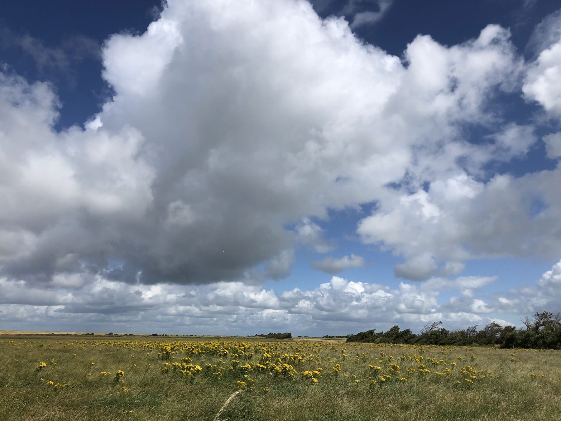 Vadehavet ligger ca. et kvarter fra Ribe centrum og er et meget interessant fænomen, som er på UNESCO’s verdensarvsliste. Det er et af verdens vigtigste vådområder med et rigt dyre- og planteliv, samt vandet, der har et helt unikt tidevandsforhold. Her kan man være så heldig at se sæler, en masse forskellige slags fuglearter, søstjerner og mere. Hvis jeg skal fortælle lidt om min personlige oplevelse af Vadehavet, så må jeg sige, at det helt klart er et udsædvanligt syn med lavvande og vandet, der er meget stille, samt landskabet i sig selv, som er ganske flot. Men jeg må være ærlig og sige, at min oplevelse faktisk var en smule skuffende. Der var ikke super meget til det under mit besøg, for det var egentlig kun lavvandet, der var beundringsværdigt. Der var ikke nogen unikke plantearter eller dyr. MEN det skal så også lige siges, at det var lidt selvforskyldt – jeg havde ikke nogen guide eller arrangeret tur og jeg udforskede kun et enkelt område af vadehavet, da jeg kun havde en enkelt dag i Ribe, så jeg var ret begrænset på tid. Jeg er sikker på, at hvis jeg havde meldt mig til en guidet tur eller virkelig dedikerede tiden til at udforske eller hvis jeg måske kom i en “bedre” sæson, så havde min oplevelse nok været bedre. Men nu sidder Vadehavet desværre lidt som en skuffelse i min hukommelse. Så jeg vil helt klart anbefale at i lærer af mine fejl 😀 Men når det så er sagt, så var det selvfølgelig ikke helt spild af tid – det var ganske interessant – og så har man også muligheden for at se nogle smukke marker på vejen mellem Vadehavscentret og Vadehavet (se nederste billede).