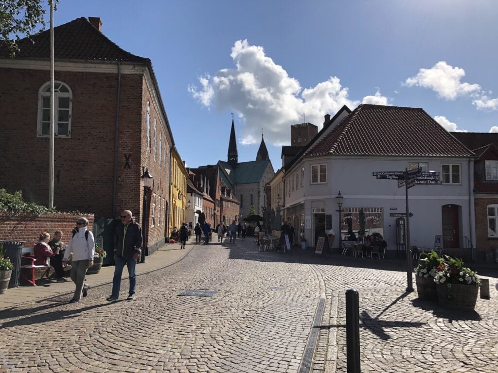 Den gamle bydel er lille, men charmerende og virkelig flot skruet sammen, hvor nærmest alle veje fører til Domkirken – men en negativ ting ved Ribe, som jeg må tilføje her, er det ærgerlige faktum, at man ikke har valgt at lukke af for transporten ved torvene (herunder Domkirke torvet) og de helt små gader, da man ofte bliver generet og kommer i akavede situationer pga. de mange biler, der kører rundt i den bydel. Jeg tror det vil være et super godt initiativ, hvis man lukkede af for transporten ved disse steder, så man kan gå i fred og ro, uden at skulle tænke på bilerne, der nogle gange kommer susende forbi.