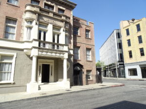 Men det absolut største højdepunkt ved turen, synes jeg, var det rimelig store og meget overbevisende New York set, som de har bygget. Det er bygget i rigtig størrelse og fylder to gader. Bygningerne er i gammeldags New York stil, og du føler nærmest at du står midt i byen, når du er på settet. Men selvfølgelig når du kommer lidt tættere på bygningerne, kan du se at de ikke er bygget af rigtige mursten, men noget let og billigere materiale. Dog stadig meget imponerende og troværdigt. Turguiden fortalte os, at New York settet er hyppigt blevet brugt i film gennem årene, så for at tilføje noget lidt unikt til sin film, kan man ændre detaljer såsom farven og møbleringen inde i bygningerne, dørhåndtag osv. På settet fik vi også set en helt speciel bygning, som er blevet brugt i en meget berømt film – det er nemlig den berygtede jazzcafe fra Spiderman 3, og den ser præcis ud på samme måde som i filmen, så det var meget interessant at se.